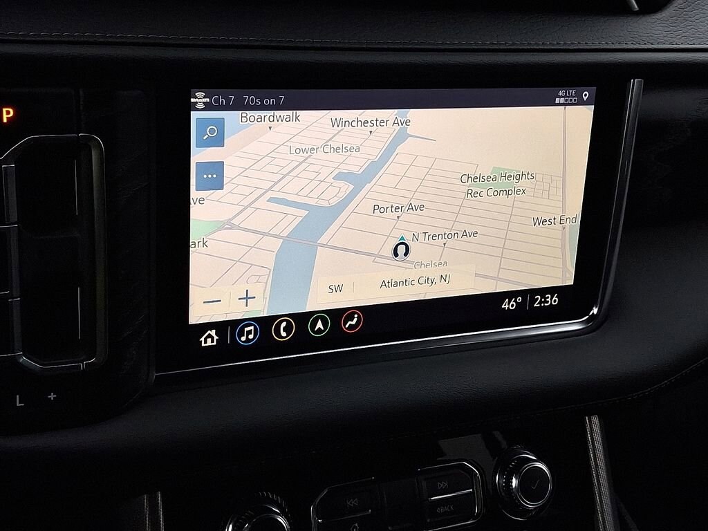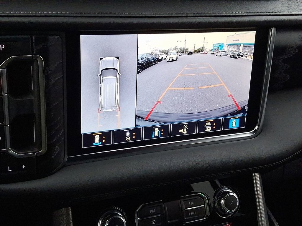 Step inside the Yukon Denali and you'll be enveloped in a world of luxury. The cabin is adorned with premium materials, including perforated leather seating surfaces and a heated steering wheel. Dual-zone automatic climate control, a 15-inch head-up display, and a Bose 14-speaker surround sound system ensure your every need is met.