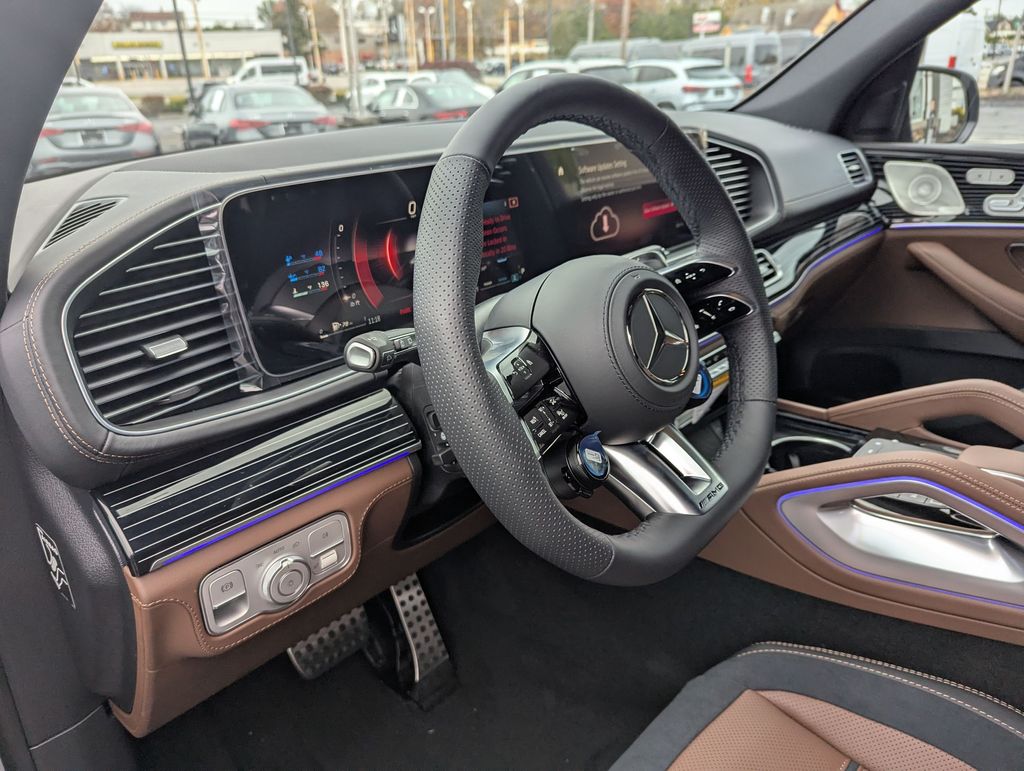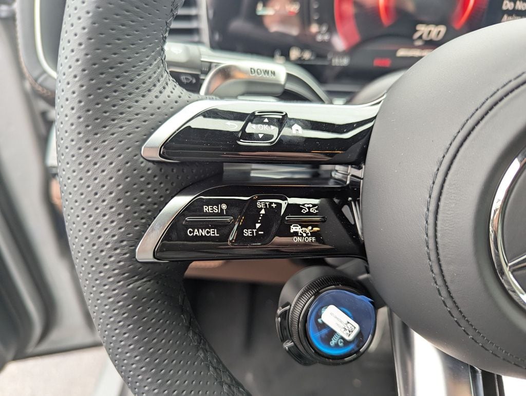 13 Speakers, 20" AMG® Twin 5-Spoke Wheels, 4-Wheel Disc Brakes, ABS brakes, Active Distance Assist DISTRONIC®, Active Lane Change Assist, Active Lane Keeping Assist, Active Speed Limit Assist, Active Steering Assist, Active Stop & and Go Assist, Adaptive suspension, Air Conditioning, All-Season Front and Rear Floormats, Alloy wheels, AM/FM radio: SiriusXM, AMG® Night Package, Anti-whiplash front head restraints, Apple CarPlay®/Android Auto®, Auto High-beam Headlights, Auto tilt-away steering wheel, Auto-dimming door mirrors, Auto-dimming Rear-View mirror, Auto-leveling suspension, Automatic temperature control, Brake assist, Brushed Aluminum Trim, Bumpers: body-color, Burmester® Surround Sound System, Compass, Delay-off headlights, Driver Assistance Package, Driver door bin, Driver vanity mirror, Dual front impact airbags, Dual front side impact airbags, Electronic Stability Control, Emergency communication system: eCall Emergency System, Extended Restart in Stop and Go Traffic, Exterior Parking Camera Rear, First Aid Kit, Four wheel independent suspension, Front anti-roll bar, Front Bucket Seats, Front Center Armrest, Front dual zone A/C, Front reading lights, Fully automatic headlights, Garage door transmitter: HomeLink, Heated and Ventilated Power Front Seats with Driver Memory, Heated door mirrors, Heated front seats, Heated Rear Seats, Heated Steering Wheel, Heated Washer System, High Performance Tires, Illuminated entry, Knee airbag, Leather steering wheel, Low tire pressure warning, MB-Tex Dashboard and Door Panels, Memory seat, Nappa Leather Dashboard and Door Panels, Nappa Leather Upholstery, Navigation system: MBUX, Occupant sensing airbag, Omission of Color Seatbelts, Outside temperature display, Overhead airbag, Panic alarm, Passenger door bin, Passenger vanity mirror, Power adjustable front head restraints, Power door mirrors, Power driver seat, Power Liftgate, Power moonroof: Panorama, Power passenger seat, Power steering, Power windows, Powered Rear Side-Window Sunshades, Pre-Installation For Online Music Streaming, Premium audio system: MBUX, Radio data system, Radio: 12.3" Media Display with Touchscreen, Rain sensing wipers, Rear anti-roll bar, Rear fog lights, Rear reading lights, Rear seat center armrest, Rear window defroster, Rear window wiper, Remote keyless entry, Route-Based Speed Adaptation, Security system, Sound Personalization, Speed control, Speed-sensing steering, Speed-Sensitive Wipers, Split folding rear seat, Spoiler, Sport steering wheel, Steering wheel memory, Steering wheel mounted audio controls, Tachometer, Telescoping steering wheel, Tilt steering wheel, Traction control, Trip computer, Turn signal indicator mirrors, Ventilated front seats, Weather band radio, Wheel Locking Bolts, Wheels: 22" AMG® Cross-Spoke Forged Matte Black, Winter Package.