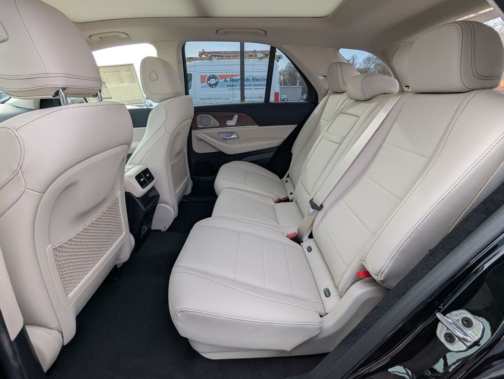 The GLE's sleek, sophisticated design is further accentuated by the Night Package, Exclusive Trim, and 21" AMG® Twin 5-Spoke wheels with black accents. Step inside the cabin and be enveloped in the luxurious MB-Tex upholstery, complemented by the Macchiato Headliner and power-adjustable front seats with memory function.