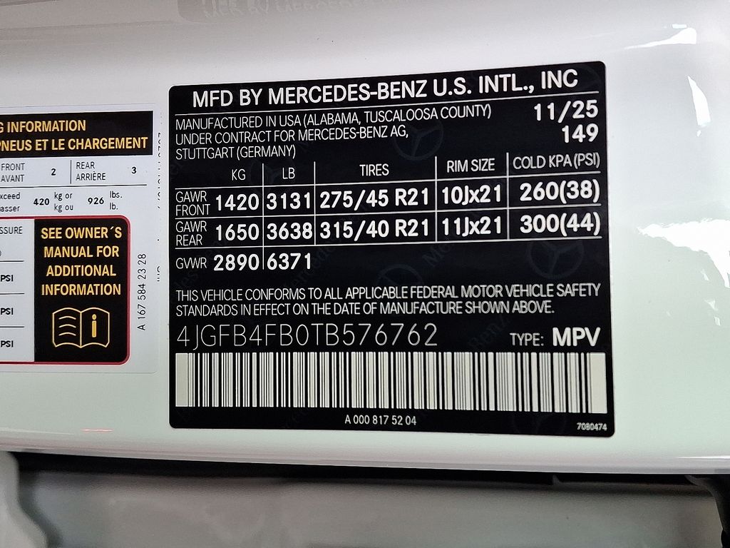 4-Wheel Disc Brakes, 8 Speakers, ABS brakes, Air Conditioning, Alloy wheels, AM/FM radio: SiriusXM, Anti-whiplash front head restraints, Apple CarPlay®/Android Auto®, Auto High-beam Headlights, Auto tilt-away steering wheel, Auto-dimming door mirrors, Auto-dimming Rear-View mirror, Automatic temperature control, Brake assist, Bumpers: body-color, Compass, Delay-off headlights, Driver door bin, Driver vanity mirror, Dual front impact airbags, Dual front side impact airbags, Electronic Stability Control, Emergency communication system: eCall Emergency System, Exterior Parking Camera Rear, Four wheel independent suspension, Front anti-roll bar, Front Bucket Seats, Front Center Armrest, Front dual zone A/C, Front reading lights, Fully automatic headlights, Garage door transmitter: HomeLink, Heated door mirrors, Heated Front Seats, Heated front seats, HERMES Communications Module LTE, Illuminated entry, Knee airbag, Leather steering wheel, Low tire pressure warning, MB Navigation, MB-Tex Seat Trim, Memory seat, Navigation system: MBUX, Occupant sensing airbag, Outside temperature display, Overhead airbag, Panic alarm, Passenger door bin, Passenger vanity mirror, Power adjustable front head restraints, Power door mirrors, Power driver seat, Power Front Seats, Power Liftgate, Power moonroof: Panorama, Power passenger seat, Power steering, Power windows, Premium audio system: MBUX, Radio data system, Radio: 12.3" Media Display with Touchscreen, Rain sensing wipers, Rear anti-roll bar, Rear fog lights, Rear reading lights, Rear seat center armrest, Rear window defroster, Rear window wiper, Remote keyless entry, Security system, SiriusXM Satellite Radio, Speed control, Speed-sensing steering, Speed-Sensitive Wipers, Split folding rear seat, Spoiler, Steering wheel memory, Steering wheel mounted audio controls, Tachometer, Telescoping steering wheel, Tilt steering wheel, Traction control, Trip computer, Turn signal indicator mirrors, Weather band radio, Wheels: 19" Twin 5-Spoke, Wireless Charging, Wireless Smartphone Integration.