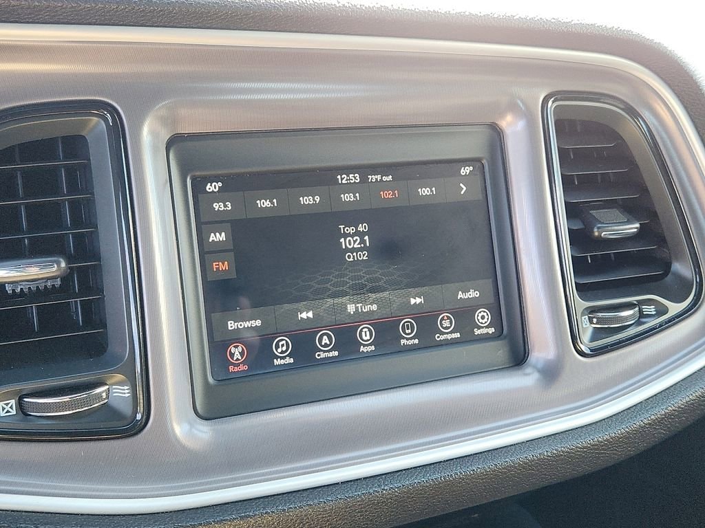 4-Wheel Disc Brakes, 6 Speakers, ABS brakes, Air Conditioning, Alloy wheels, AM/FM radio, Anti-whiplash front head restraints, Apple CarPlay, Apple CarPlay/Android Auto, Auto-dimming Rear-View mirror, Automatic temperature control, Black Fuel Filler Door, Black Grille w/Bezel, Blacktop Package, Blacktop Stripe, Brake assist, Bumpers: body-color, Challenger Blacktop Grille Badge, Compass, Compass Gauge, Delay-off headlights, Driver door bin, Driver vanity mirror, Dual front impact airbags, Dual front side impact airbags, Electronic Stability Control, Four wheel independent suspension, Front anti-roll bar, Front Bucket Seats, Front Center Armrest, Front dual zone A/C, Front reading lights, Fully automatic headlights, Gloss Black I/P Cluster Trim Rings, Google Android Auto, GPS Antenna Input, Heated door mirrors, Houndstooth Cloth Sport Seat, Illuminated entry, Integrated Center Stack Radio, Integrated Voice Command w/Bluetooth, Leather Performance Steering Wheel, Leather Shift Knob, Low tire pressure warning, Media Hub (2 USB, AUX), Outside temperature display, Overhead airbag, Overhead console, Panic alarm, ParkView Rear Back-Up Camera, Passenger door bin, Passenger vanity mirror, Power door mirrors, Power driver seat, Power steering, Power windows, Quick Order Package 2EA, Radio data system, Radio: Uconnect 4 w/7 Display, Rear anti-roll bar, Rear Black Spoiler, Rear reading lights, Rear seat center armrest, Rear window defroster, Remote keyless entry, Satin Black Dodge Tail Lamp Badge, Security system, Speed control, Speed-sensing steering, Split folding rear seat, Spoiler, Steering wheel mounted audio controls, Tachometer, Telescoping steering wheel, Tilt steering wheel, Traction control, Trip computer, USB Host Flip, Variably intermittent wipers, Wheels: 18 x 7.5 Cast Aluminum, Wheels: 20 x 8.0 Black Noise Painted.
